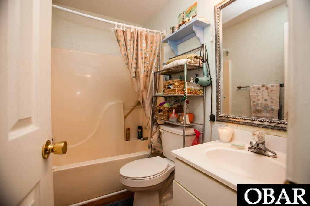There is so much to offer in this adorable Kill Devil Hills westside home. This functional layout boasts 2 bedrooms and 1 bath upstairs with a sunroom/office space. In addition, there is a full in-law suite downstairs with 1 bedroom and 1.5 bathrooms. Both spaces have stackable laundry units, so no running out in the rain to collect your clothes! The backyard is completely fenced in with a nice gate with access to the covered porch and sunroom, an area for a garden, a pond, and an oversized 10 x 12 storage shed. The cute and colorful screened patio, carport, and covered porch allow for multiple enjoyable outdoor spaces. The sunroom windows are new Jan 2020. Heat and air unit downstairs only 2 years old along with newer hot water heater as well. Don't miss the opportunity to tour this one today!