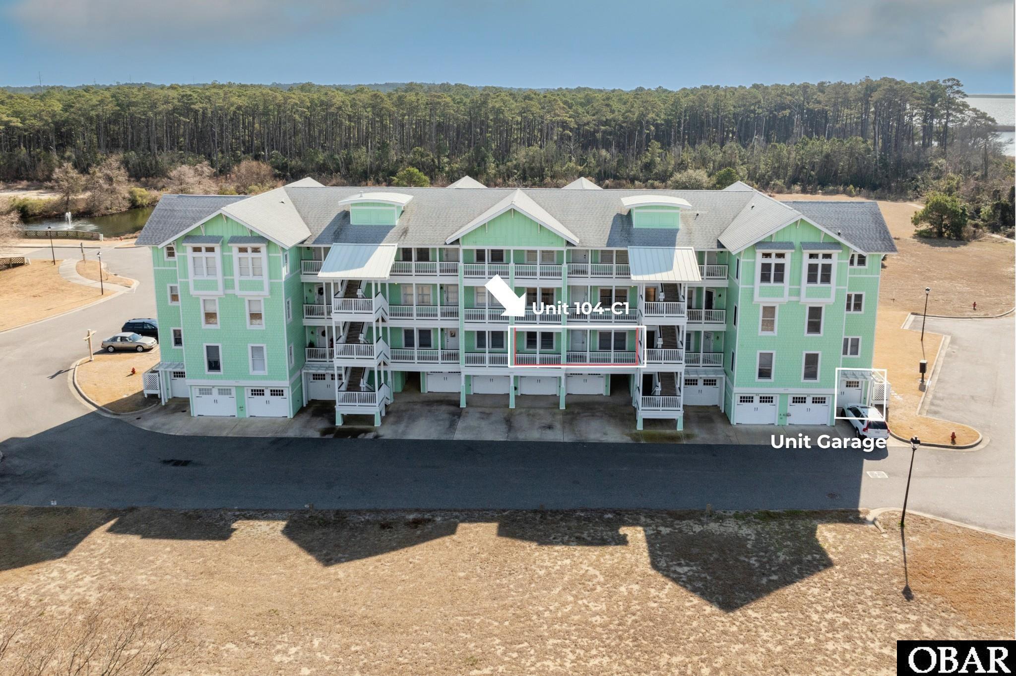 If you are looking for a one level condo in a resort style community with great amenities on the OBX. You will love Hamilton Cay, part of the BEREMUDA BAY Development. This second story condo has two bedrooms, two baths, with spacious living room, kitchen with elevated bar and dining area along with a bonus room and private garage. The covered deck can be accessed from the living room or the En-suite bedroom, that offers sound views and beautiful sunsets. The En-suite bedroom is large with a nice size closet, full bath, Fiberglass Shower, Double Vanity and tile floors. The second bedroom is around the corner close to the hall bath. The Stackable washer/dryer is conveniently located in the hallway across from the second bedroom. The Bonus room is located when you first enter the condo and can be used for 2nd living space or office. The Large Garage is a rarity to find in condos and includes a parking space in front of the garage and close to the community elevator or stairs. New Water Heater in 2024. HVAC system was replaced in September of 2020 and is on a maintenance, program, New Sofa sleeper in Bonus room. The Bermuda Bay community has many amenities for its owners and guests. Some highlights are the ELBOW BEACH POOL with a Lazy River, Splash Park, Water Slide, and a Sloped Entry Play area for the little ones. The clubhouse has a social area, pool table, media room, exercise room, baths and showers, grass volleyball court and much more. Enjoy a sunset from the beautiful Sound side dock and pier. Which can also be used for paddle boards and kayaks. The HOA fee includes the amenities of a Swimming Pool, Fitness Center, Club House, common insurance, common maintenance, road maintenance, Pier, Sound Access, PLUS Wifi and Cable Service, Garbage Chute. Enjoy the Bermuda Bay community with sidewalks, bike path trails and close to so many area attractions. The beach access on Ocean Bay Drive is close by with parking, restroom, outside showers, lifeguards and handicap friendly. The community is a short distance to the Kill Devil Hills Rec Center, Public Tennis Courts, Skate Park, Library, Dog Park and Playground, all 3 First Flight Schools, Shopping, Restaurants and the Wright Memorial. *Seller is offering to pre-pay HOA monthly Dues up to the end of the 2024 year, with acceptable offer at closing.