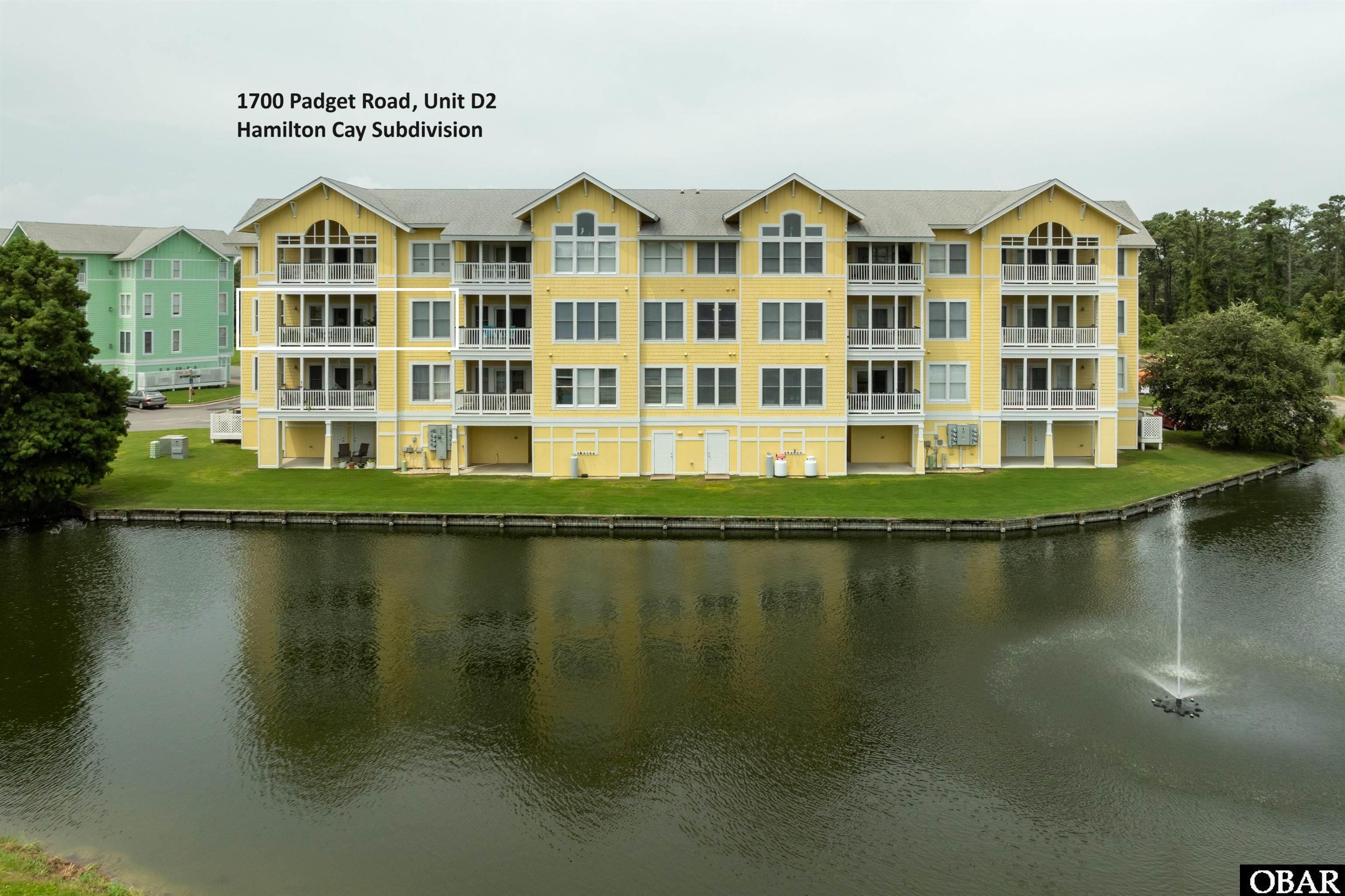 Now is your chance to secure this property as pending buyers got cold feel and we are back on the market! This Top Floor, Furnished Condo, offers an easy single story layout with 2 Bedrooms, 2 Full Baths, and a Bonus Den, allowing you to simply enjoy life on the Outer Banks! Hamilton Cay is centrally located in Kill Devil Hills at MP 8.5. Just 1.1 miles to the Ocean, and tucked back in the quaint community of Bermuda Bay. Enjoy a stroll or bike ride to the Wright Brother’s Memorial, area shopping, schools, beaches and restaurants. You will also love the Elbow Beach Clubhouse, where you can relax and take a dip in the meandering pool. In addition to the Clubhouse and custom Outdoor Community Pool, the association amenities also include a Fitness Center, and a community Pier for crabbing, fishing, kayaking, and stunning sunset views. The HOA fees includes everything from Wind and Hazard Insurance on the buildings along with all exterior maintenance from roof, painting, decking, basic Spectrum cable, WIFI, and lawn care! The layout has been designed to capture the Pond Views with an open Living, Dining and Kitchen area facing the water. The Kitchen features plenty of storage with a breakfast bar, and opens to the Dining Area and Living room with Cathedral Ceilings, Gas Fireplace, and access to a Covered Porch with Pond vistas. The Primary Suite offers a spacious bedroom and private bath with a step-in shower and double vanity. An additional Bedroom, Full Bathroom, and Bonus Den are located at the front of the Condo, along with the Laundry closet. The elevator offers a stair free lifestyle, and the 2 car garage provides plenty of storage for vehicles and all of your beach gear. If you are familiar with beach property, you know all the maintenance involved in owning a beach house - This property allows you Water Views and a Maintenance Free lifestyle at a steal, so you can simply relax and live the OBX dream.