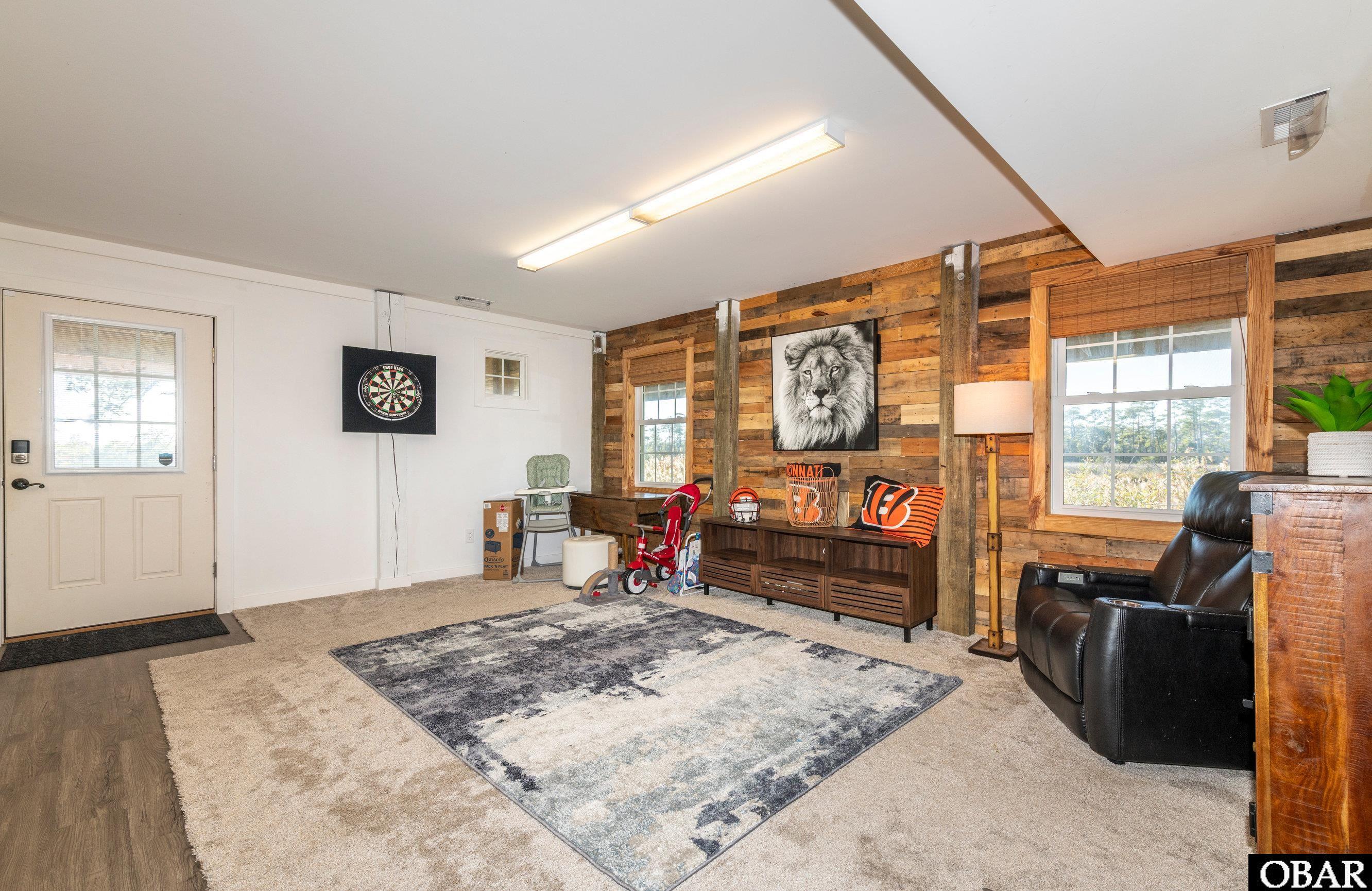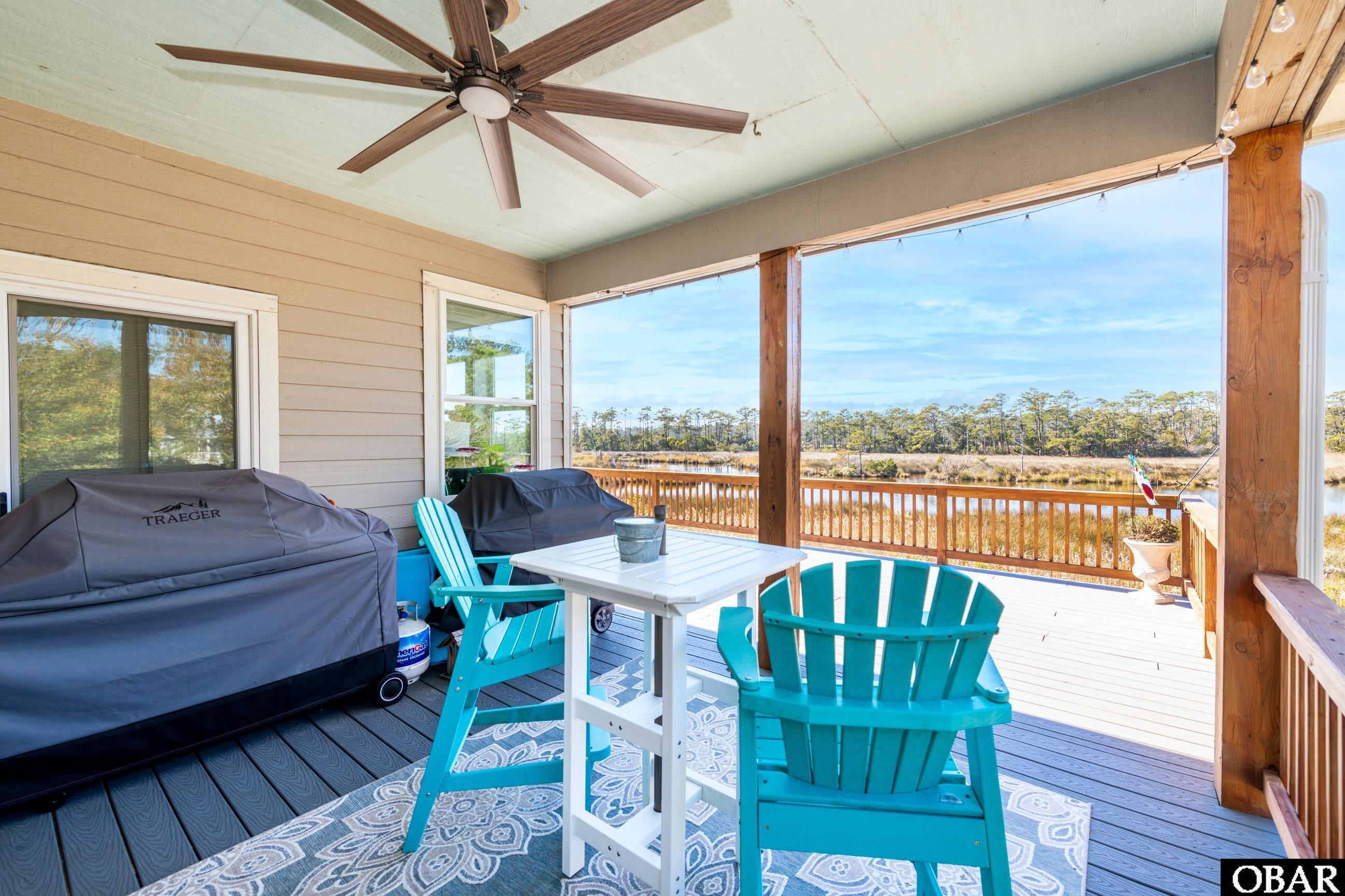 Enjoy beautiful water and marsh views and serene scenery in this custom, pristine waterfront property priced $23,000 below the recent appraised value. The top level of this home features solid maple floors throughout with two en-suite bedrooms with sliding glass doors in both leading to the covered deck and screened-in porch, one with a tiled shower and the other a jetted tub. The living room and kitchen provide panoramic views of the water with many west-facing windows to take in the nightly sunsets and 10' ceilings. The kitchen features Hickory cabinets by Island Woodworkers, new (2025) appliances, tile backsplash, and a large island that comfortably seats four people. Conveniently located in the center of the top floor is a large pantry/laundry room with a wash sink and extra storage. Expansive decks overlooking the preserve, with two covered areas (one a screened-in porch), great for outdoor entertaining. Heading downstairs, you will find an additional 850 sq. ft. of living space including a half bath with endless possibilities. Currently being used as a game room and gym, it would make a great space for a home business or could easily be converted to add an additional bedroom if desired (septic is for 3 bedrooms). Two large carports both provide a dry entry and tall enough to store an RV or boat. Additonal exterior storage available with 12'x14' shed. The exterior features wood composite siding and Azec-polymer decking for low-maintenance living. Navigable canal leading to Kitty Hawk Bay and Albermarle Sound with public boat ramp on the same road.