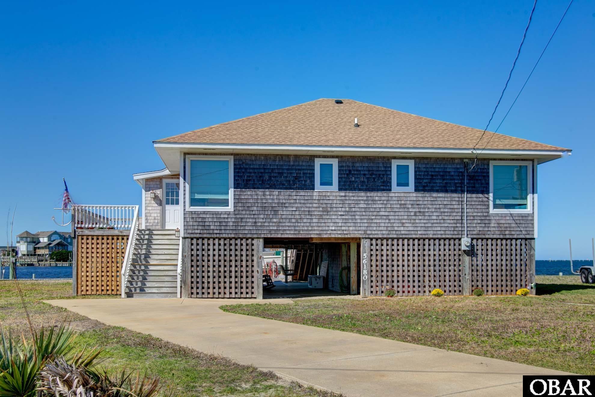 Bring your boat, your SUPs, your kayaks and canoes! This home is uniquely situated on the Pamlico Sound AND Slash Creek. Yes, you read that right, you can be sound front and canal front in Hatteras Village. With 209' feet of waterfront, a boat dock and boat lift; fishing, crabbing, boating and paddling couldn't be any more accessible or convenient. You'll have water views from every deck and nearly every window as well as vivid sunsets over "The Slash". While we're outside, let's also take notice of the expansive decks and propane powered Kohler 20kw "whole house" generator that was installed in 2021. Over the ground level 2 bay garage is a 480 square foot finished and climate controlled workshop with separate entrance from the living area. Not a woodworker? No worries, imagine an art studio, game room or home gym and yoga studio. Let's head inside. Once you enter to the great room, you'll immediately notice the expansive windows and vaulted ceilings. This open concept room provides dining, living and lounging space in addition to access to a large open loft. The open stairway has clever storage for your coats, gadgets, books and games underneath. And from the loft with custom built in desk, filing and storage cabinetry, you'll have awesome views of the sound, salt marsh, creeks and the canal. A second office space is located downstairs and includes an elaborate floor to ceiling and 3 sided desk, shelving and library unit built by the seller in his workshop. Off one side of the great room is two bedrooms, a full bath (that was remodeled in 2018) and access to an attic space with pull down stairs. On the other side you'll find the kitchen and primary bedroom, another full bath with a large curb-less tiled shower and double sinks, a 9'x10' walk in closet plus laundry nook. Is this the location you've been dreaming of? Schedule a showing today!