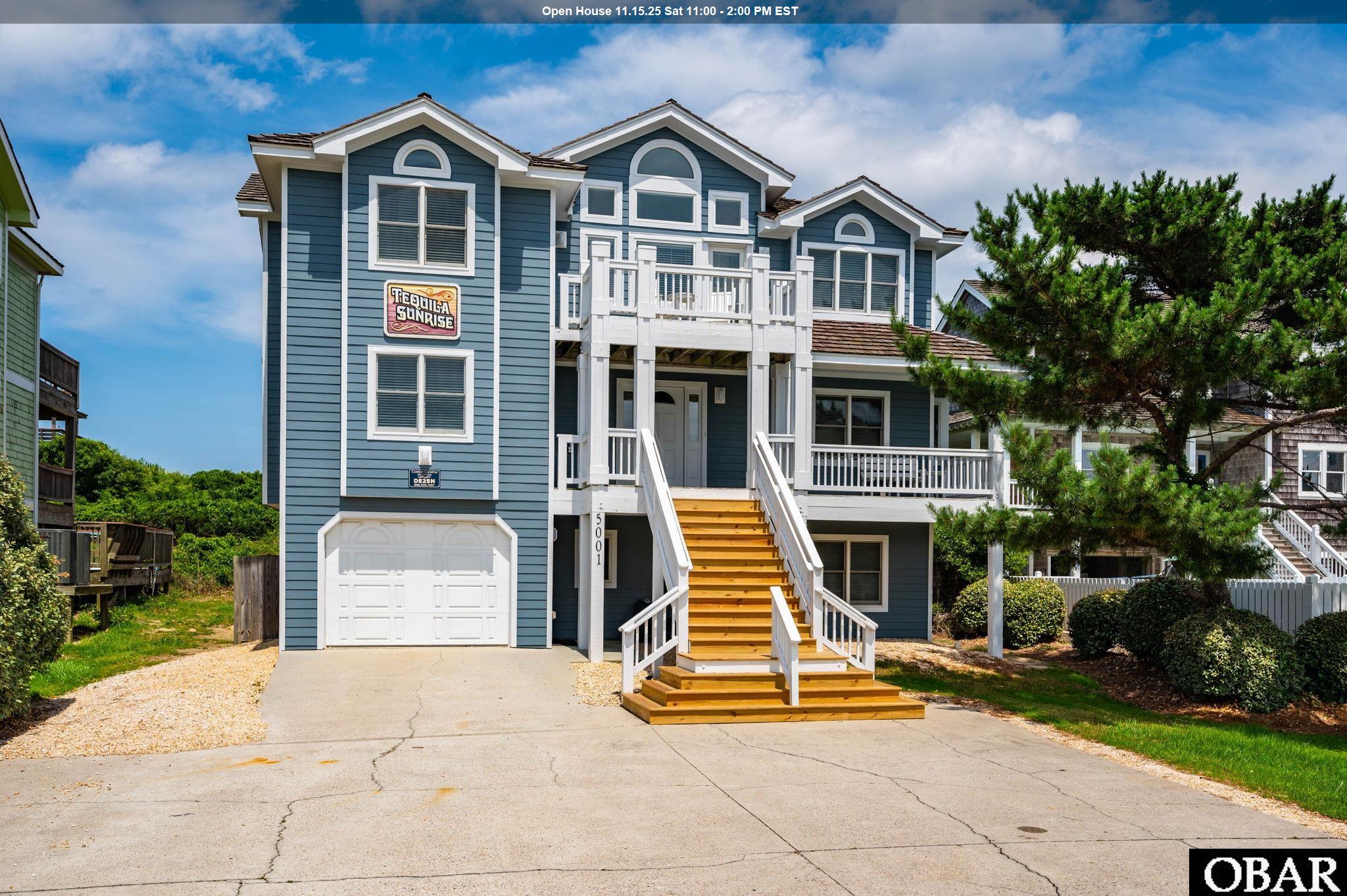 BRAND-NEW ROOF & EXTERIOR PAINT! OCEAN VIEWS from top level and peeks of Sound Views...also Bodie Island Lighthouse view, and GORGEOUS SUNSETS! Across from Isabella St Beach Access and Outer Banks Fishing Pier with renowned and wildly-popular Fishheads Bar & Grill! Beautiful nautical Custom Tile foyer, interior stairs and hallway/landings. Custom inlaid and painted 7-wood flooring in top-level den. ROOMY kitchen & dining. Granite tops, newer fishscale-design Tile backsplash and two Bosch dishwashers (new 2023). Maytag Washer & Dryer conveniently located mid-level hallway. Mid-level Game/Billiards room is its own convenient suite with fridge (ice maker), microwave, toaster, coffee makers AND dishwasher! Big private-feeling backyard has (on-demand gas-heated) in-ground Pool. Expansive covered ground-level picnic area with room for outdoor entertaining. Access to South Creek Acres subdivision Community/Assoc Pool. BIG ITEMS ALL NEW OR NEWER, plus seller continuously maintains little things like NEW pots & pans, dishes & kitchenwares EVERY Fall. Vacation rental managed by Outer Banks Blue, who also maintains pool and the TWO HOT TUBS. Always good rental guest reviews. Booking up for 2026 ($84k gross as of 11-12-25). Come see this gorgeous home!
